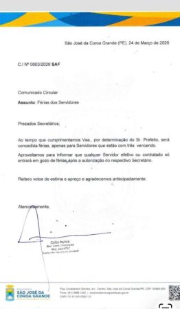 De acordo com um comunicado oficial da própria Prefeitura, datado de 24 de março de 2026, a gestão determinou que as férias só serão concedidas aos servidores que estiverem com três períodos vencidos, ou seja, obrigando trabalhadores a acumularem até três anos sem usufruir de um direito básico garantido por lei.